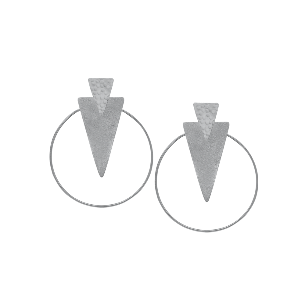 Σκουλαρίκια Κρίκοι τρίγωνα από μέταλλο ορείχαλκου επαργυρωμένα, σαγρέ ματ και γυαλιστερό. (μικρά)
