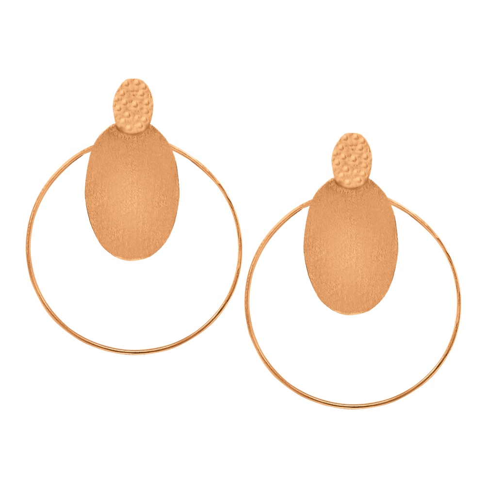Σκουλαρίκια Κρίκοι οβάλ από μέταλλο ορείχαλκου ροζ χρυσό, σαγρέ ματ και γυαλιστερό. (μεγάλα)