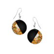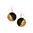 Μοναδικά χειροποίητα Σκουλαρίκια στρογγυλά από μέταλλο ορείχαλκου με σμάλτο, φύλλα χρυσού και υγρό γυαλί. Φινίρισμα: Γυαλιστερό. Χρώμα μέταλλου: Επιχρυσωμένο. Χρώμα Σμάλτου: Μαύρο και φύλλα χρυσού. Το μαύρο χρώμα Συμβολίζει την επιμονή, σταθερότητα και σοβαρότητα. Φοριέται όλες τις Εποχές και ταιριάζουν με Καθημερινό και Βραδινό ντύσιμο.