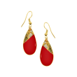 Μοναδικά χειροποίητα Σκουλαρίκια σε σχήμα σταγόνα από μέταλλο ορείχαλκου με σμάλτο, φύλλα χρυσού και υγρό γυαλί. Φινίρισμα: Γυαλιστερό. Χρώμα μέταλλου: Επαργυρωμένο. Χρώμα Σμάλτου: Κόκκινο και φύλλα χρυσού. Το κόκκινο χρώμα είναι χρώμα του ερωτικού πάθους, το χρώμα της φωτιάς, της θερμότητας. Φοριέται όλες τις Εποχές και ταιριάζουν με Καθημερινό και Βραδινό ντύσιμο.