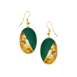 1B37: Χειροποίητα Σκουλαρίκια με πράσινο σμάλτο και φύλλα χρυσού Επαργυρωμένα (Σμάλτο και Υγρό Γυαλί)