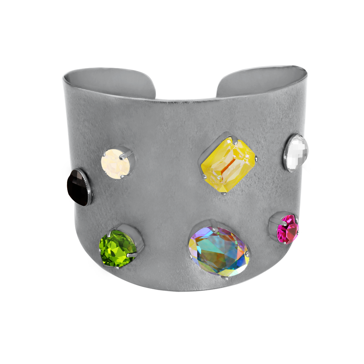 Χειροποίητο Βραχιόλι για Βραχίονα με ιριδίζον πέτρες Preciosa από μέταλλο ορείχαλκου, επαργυρωμένο. Το μέγεθος αυξομειώνεται.