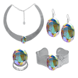 Q75: Χειροποίητο Βραχιόλι με ιριδίζον οβάλ πέτρα Preciosa επαργυρωμένο