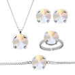 Χειροποίητο Σετ με ιριδίζον λευκές διαφανές πέτρες Preciosa από μέταλλο ορείχαλκου και ατσάλινη αλυσίδα, ροζ χρυσό. Αποτελείται από κολιέ, σκουλαρίκια, βραχιόλι και δαχτυλίδι.